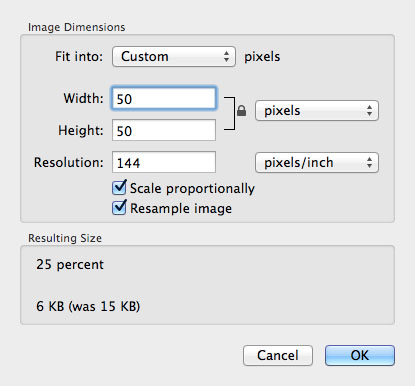 The final step would be to resize your image to the standard formats required by iOS: 50x50 for the high resolution icon and 25x25 for the standard one: