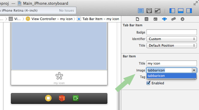 Then from the storyboard select your tab bar item and choose the imported image, that's it: