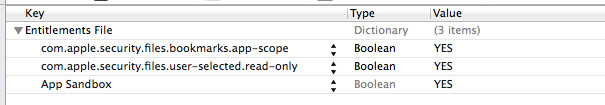 Tip: you may want to use the entitlement "com.apple.security.files.user-selected.read-write" to gain read and write access to files.